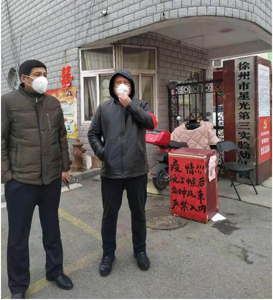 2月6日晚上,顧忠義、魏守燕等7名退役軍人在徐州市泉山區(qū)金山街道退役軍人服務(wù)站站長張彬的帶領(lǐng)下,分別值守在金山轄區(qū)的各個(gè)居民區(qū)門口,對(duì)進(jìn)出居民進(jìn)行檢查、詢問、測(cè)量體溫,做好疫情的宣傳。這些退役軍人都不是社區(qū)工作人員,他們分布在各行各業(yè),在金山街道黨工委的發(fā)動(dòng)下,他們自愿組成金山街道退役軍人志愿者服務(wù)隊(duì)。