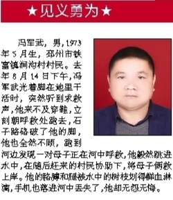 馬光躍,男,1971年10月生,豐縣中陽里街道新豐社區(qū)居民。2019年8月3日晚7點(diǎn),他和愛人在鳳鳴公園里乘涼,走到湖中的木橋時(shí),看到旁邊有一個(gè)女孩情緒激動(dòng),突然跳了下去。見此情景,馬光躍脫掉上衣飛身躍進(jìn)湖中,快速游向落水女孩,經(jīng)過幾個(gè)沉浮喝了幾口湖水,才把她推到橋邊,在岸邊眾人的協(xié)助下,女孩被成功救上岸。