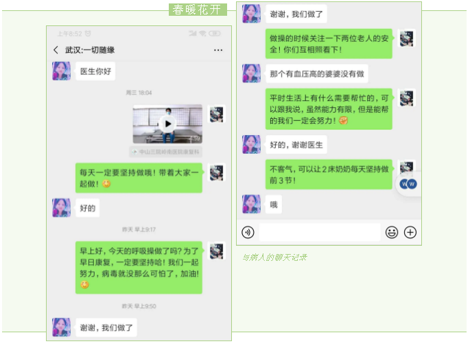 一次完美的配合。前線的戰(zhàn)績(jī)離不開后方的出謀劃策,一套針對(duì)新冠肺炎的呼吸體操及時(shí)從后方傳來(lái),隊(duì)長(zhǎng)派我作為第一梯隊(duì)學(xué)習(xí)并執(zhí)行,我用了一個(gè)晚上反復(fù)的練習(xí),第二天進(jìn)艙便迫不及待的向患者介紹,并帶著試點(diǎn)病房的患者進(jìn)行練習(xí),患者非常配合并高效反饋,為進(jìn)一步推廣奠定了基礎(chǔ),領(lǐng)操時(shí)因?yàn)榇┲窈竦姆雷o(hù)服,雖然衣襟早已汗?jié),臉上濕疹癢痛無(wú)比,解說(shuō)時(shí)喘不上氣,但是我心里卻美滋滋的!美的是自己的執(zhí)行力和患者支持力完美結(jié)合!