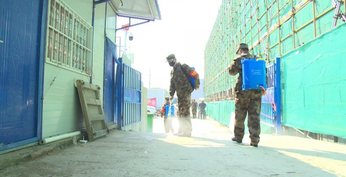 邢偉,是徐州經(jīng)開區(qū)金山橋街道辦事處武裝部民兵應(yīng)急分隊的一名民兵。上午9點,他就和隊里的戰(zhàn)友一起,準備好了滿滿6大罐的消毒液,今天他們將走進轄區(qū)內(nèi)已復(fù)工復(fù)產(chǎn)的企業(yè)和工地,對于宿舍、食堂等人員密集區(qū)域進行全面消殺。