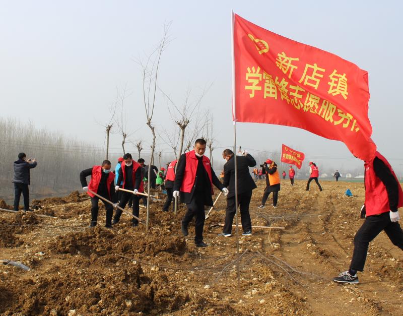 在時(shí)集鎮(zhèn)二七干渠和新店鎮(zhèn)環(huán)湖大道綠色廊道等植樹現(xiàn)場,志愿者們有的挖坑、有的栽苗、有的培土,老兵胡道楊的手磨出了血泡,他高興地說:“雖然手上有些疼,但一想到以后這里將綠樹成林,心里非常高興!”