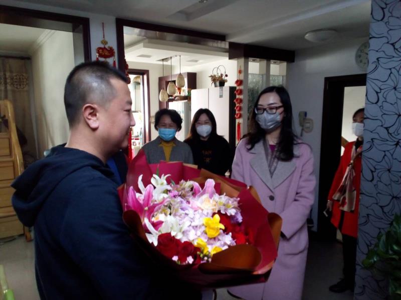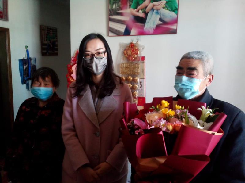3月20日,徐州市泉山區(qū)政府副區(qū)長徐子宇來到赴武漢抗疫一線醫(yī)護人員、退役軍人家屬李錦、秦丹家中,進行走訪慰問。她向退役軍人家屬表示親切慰問和誠摯敬意,并送去鮮花、口罩、消毒液等慰問品。區(qū)退役軍人事務局局長張?zhí)N慧陪同參加慰問。