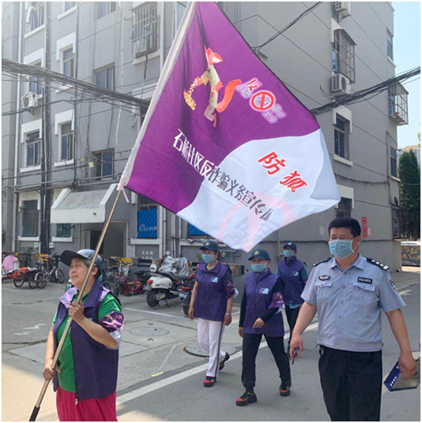 金山橋街道石橋社區(qū)始終堅(jiān)持黨組織的領(lǐng)導(dǎo),一直以來(lái)致力于盤活治安一線管控力量,歷經(jīng)一年的不懈探索與各項(xiàng)社會(huì)資源的發(fā)掘與整合,目前,石橋社區(qū)已組建成5支聯(lián)防隊(duì)伍。與此同時(shí)也創(chuàng)新出了“兩隊(duì)三組”的新模式,即:負(fù)責(zé)每天晚上巡邏,與派出所形成接力巡邏,致力保障社區(qū)“全天候”安全的萬(wàn)家安黨員巡邏隊(duì);預(yù)防社區(qū)居民財(cái)產(chǎn)損失的防“狐”反詐騙義務(wù)宣傳隊(duì);抵制販毒吸毒的懲販拒吸禁毒義務(wù)宣傳隊(duì);關(guān)愛(ài)空巢老人的夕陽(yáng)無(wú)憂敬老愛(ài)老義務(wù)服務(wù)隊(duì);緩解調(diào)節(jié)鄰里家庭糾紛的三尺巷糾紛調(diào)解隊(duì)。各隊(duì)各組各司其“職”、互聯(lián)互動(dòng),編織成了極具石橋社區(qū)特色的安全防護(hù)網(wǎng)絡(luò)。
