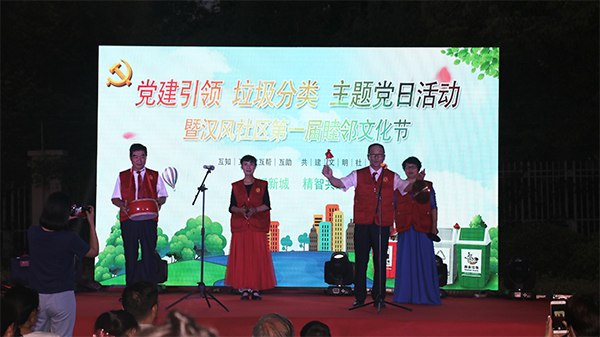 黨建引領(lǐng)是社區(qū)治理的主線,垃圾分類是當(dāng)今社會新風(fēng)尚,鄰里和睦是社會和諧的基礎(chǔ)。為深入踐行熱心便民、愛心樂民、赤心聚民的黨建+“三民”工程服務(wù)理念,將社會熱點(diǎn)話題融入到社區(qū)黨建品牌,徐州市云龍區(qū)大龍湖街道漢風(fēng)社區(qū)于2020年7月20日晚在社區(qū)黨群服務(wù)中心門前廣場隆重舉辦了“黨建引領(lǐng) 垃圾分類”主題黨日活動暨漢風(fēng)社區(qū)第一屆睦鄰文化節(jié)。漢風(fēng)社區(qū)“第一書記”、云龍區(qū)金融監(jiān)管局局長盧先輝、大龍湖街道辦事處副主任魏中密等出席活動,F(xiàn)場黨員群眾歡聚一堂,熱烈的氛圍吸引近三百余名居民駐足觀看。