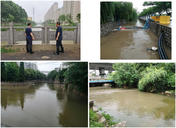 街道、社區(qū)工作人員對(duì)龍?zhí)逗、楊山大溝、楊石大溝、美好匯鄰灣等等重點(diǎn)部位和重點(diǎn)區(qū)域進(jìn)行全方位巡察,在河道外增加抽水泵,時(shí)刻有人值班,觀察水位,河道水位一但上漲到水泥堤壩,立刻與水利局溝通開放泄洪閘。