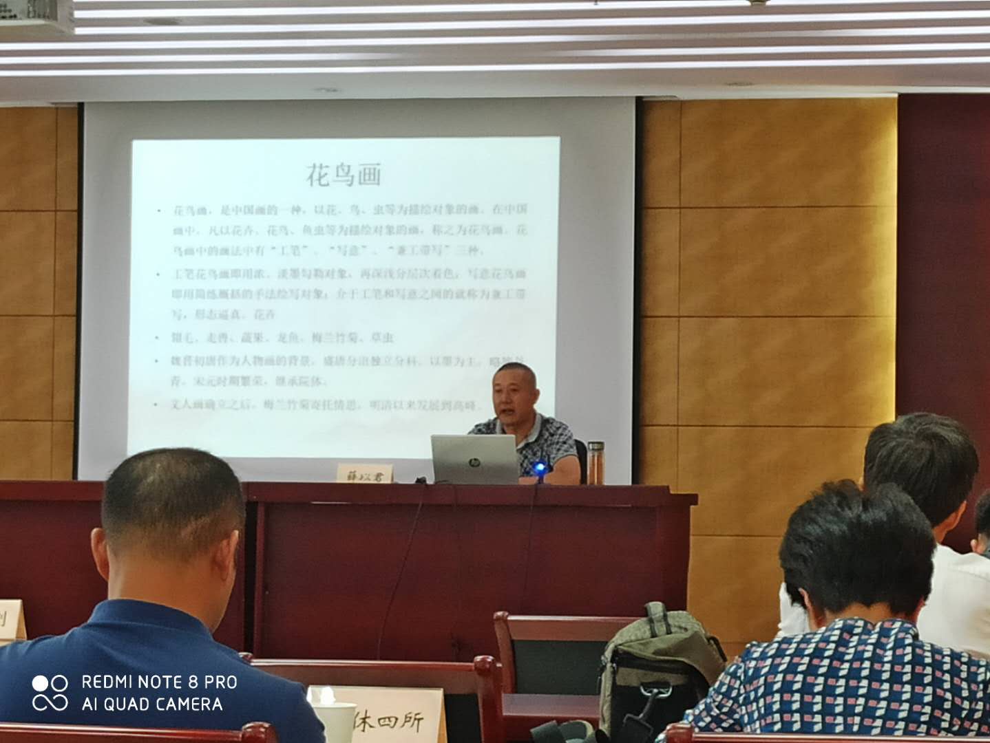 薛以君以《中國畫鑒賞》為題,講述了中國畫發(fā)展簡史,結(jié)合中國畫特色,從民間畫、院體畫、文人畫、設(shè)色畫、水墨畫、花鳥畫、山水畫等分類及書畫收藏等,耐心細(xì)致地進(jìn)行講解。通過授課,大家紛紛表示受益匪淺。