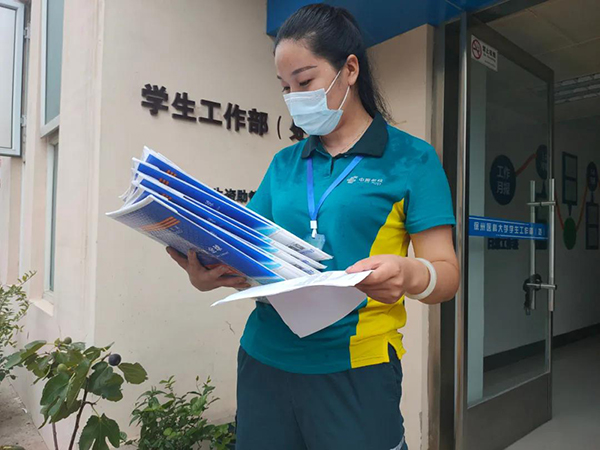 上午10點(diǎn)多投攬員王田田再次回徐州郵政東區(qū)營投部,裝好快件后她又馬不停蹄地為客戶送件。
