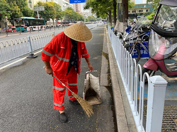 滕師傅負(fù)責(zé)的保潔區(qū)域是中山南路市交通銀行到王陵路路段,不足500米的距離卻需要十幾個(gè)小時(shí)的連續(xù)堅(jiān)守。