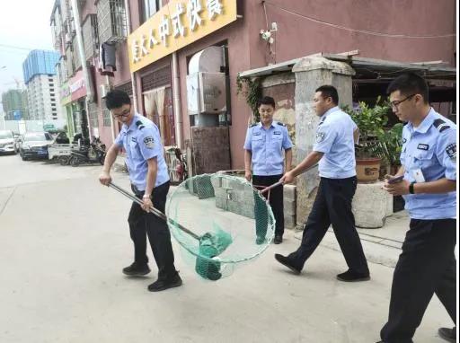 城管隊員協(xié)助片警對流浪狗進行集中收容處理,同時宣傳倡導文明養(yǎng)犬、規(guī)范養(yǎng)犬。