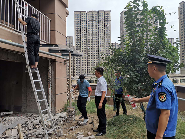 為有效打擊新上房小區(qū)違法建設行為,物業(yè)監(jiān)察大隊要求物業(yè)公司認真履行發(fā)現(xiàn)、上報、禁運違法建設物料、制止違法建設行為,屬地辦事處還安排一名負責人包掛新小區(qū),明確小區(qū)違建巡查城管隊員,每天巡查上報小區(qū)違建情況。同時,在新上房小區(qū)出入口、單元門張貼有獎舉報公告,完善保潔員發(fā)現(xiàn)、舉報機制。