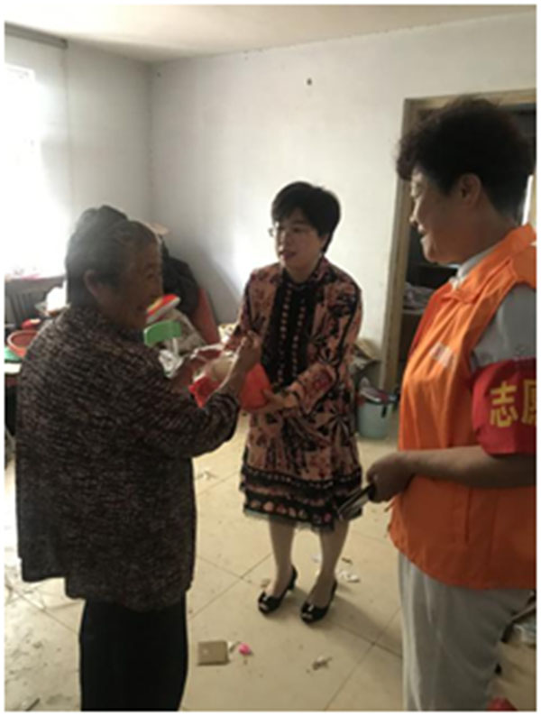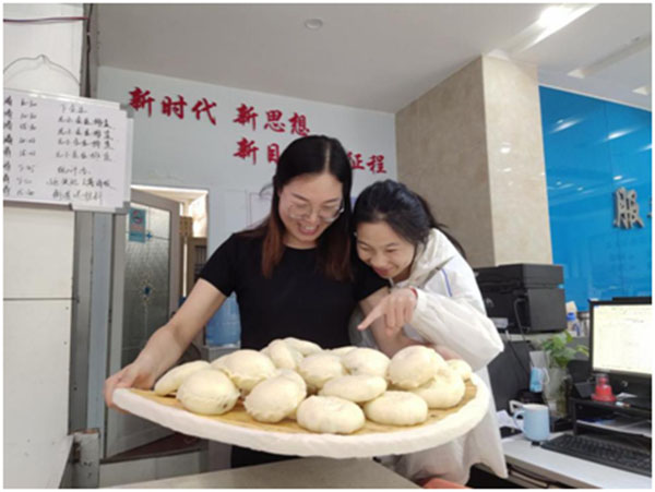 不一會(huì)兒,一盤(pán)盤(pán)可口美味的月餅就做好了,熱騰騰的月餅新鮮出爐,社區(qū)工作人員朱惠俠第一時(shí)間將剛出鍋的月餅送到轄區(qū)的孤寡家庭劉書(shū)華等人手中,為他們送去社區(qū)大家庭的溫暖與關(guān)愛(ài)。
