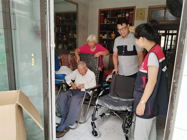 在韓老家中,社區(qū)服務(wù)站工作人員將輪椅安裝好,向韓老講解使用方法和注意事項,并叮囑老人保重身體,有困難及時向社區(qū)服務(wù)站反映,服務(wù)站一定會幫助解決。