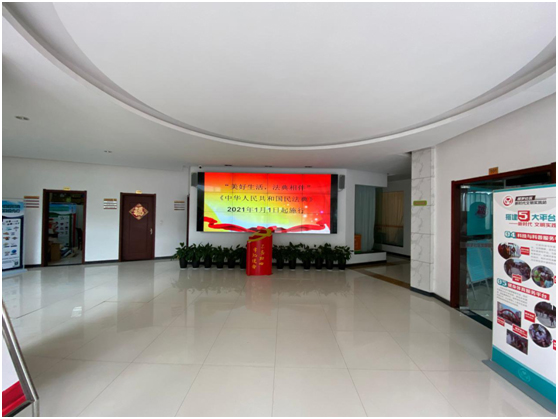 各社區(qū)組織轄區(qū)內(nèi)商戶通過LED顯示屏滾動(dòng)播放民法典宣傳標(biāo)語的方式,使《民法典》真正走到百姓身邊。