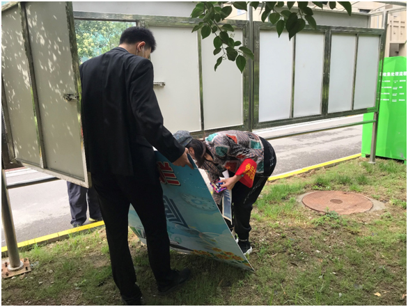 為強(qiáng)化“兩城同創(chuàng)”工作的宣傳,楊莊社區(qū)積極發(fā)動(dòng)黨員中心戶、志愿者、網(wǎng)格員及物業(yè)人員走門串戶對(duì)“兩城同創(chuàng)”活動(dòng)進(jìn)行宣傳,充分利用櫥窗、宣傳欄、標(biāo)語(yǔ)等形式向廣大居民宣傳“兩城同創(chuàng)”知識(shí),進(jìn)一步提高了廣大市民的對(duì)“兩城同創(chuàng)”的知曉率和參與率,進(jìn)一步營(yíng)造了“兩城同創(chuàng)”的濃厚氛圍。結(jié)合固定黨日活動(dòng),黨員中心戶、志愿者主動(dòng)參與到“雙城同創(chuàng)”工作中,通過(guò)走訪入戶進(jìn)行問(wèn)卷調(diào)查,走進(jìn)小區(qū)擺放電動(dòng)車、清理飛線、清理綠化帶垃圾、更換宣傳欄等,為建設(shè)宜居社區(qū)貢獻(xiàn)力量。黨員通過(guò)“戴黨徽、亮身份、做表率”,示范、引領(lǐng)、帶動(dòng)身邊群眾積極參與社會(huì)治理各項(xiàng)工作,用自己的實(shí)際行動(dòng)踐行“初心”與“使命”。