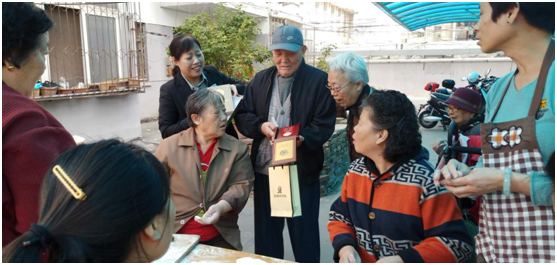 抗美援朝老戰(zhàn)士何志修向街坊展示紀念章