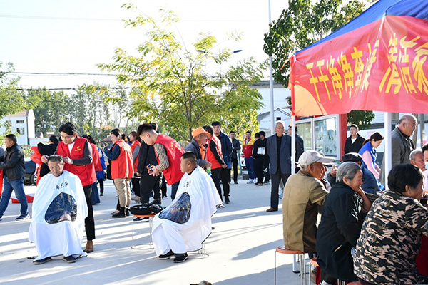● “時(shí)尚芭莎”理發(fā)店老板魏密密還在各村文化廣場(chǎng)上為低收入戶(hù)免費(fèi)理發(fā)。