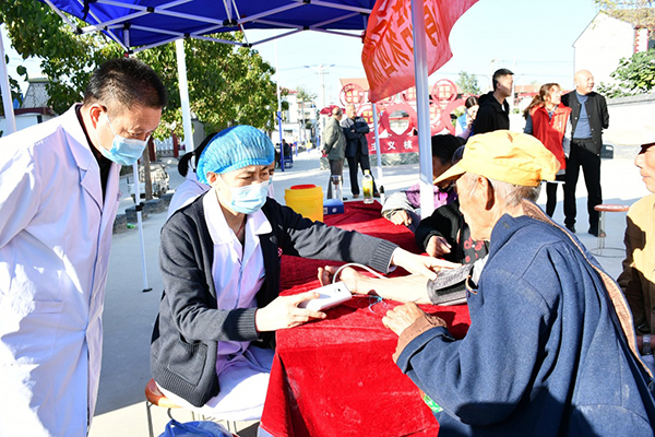 ●  鎮(zhèn)衛(wèi)生院志愿者也在文化廣場(chǎng)上開(kāi)展健康愛(ài)心義診活動(dòng),醫(yī)護(hù)人員一字排開(kāi),熱情地為前來(lái)咨詢(xún)就診的低收入人群解疑答惑、免費(fèi)聽(tīng)診、檢查身體、測(cè)量血壓以及提供有針對(duì)性的診療意見(jiàn)等。