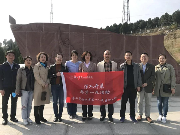 黃淮網(wǎng)  10月17日下午,農(nóng)工黨徐州市第一人民醫(yī)院支部委員會(huì)赴安徽省靈璧縣烈士陵園開展“兩學(xué)一走”——學(xué)習(xí)習(xí)近平總書記關(guān)于統(tǒng)一戰(zhàn)線工作的重要論述,學(xué)習(xí)黨史、新中國史、改革開放史和社會(huì)主義發(fā)展史,走進(jìn)革命老區(qū)的學(xué)習(xí)活動(dòng)。