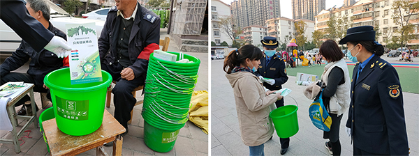 現(xiàn)場工作人員向居民進(jìn)行垃圾分類知識(shí)宣傳,向居民發(fā)放垃圾分類指南、垃圾分類宣傳冊(cè),普及垃圾分類知識(shí),講解垃圾分類的具體做法,宣傳垃圾分類的歷史意義。