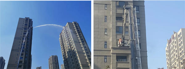 開發(fā)區(qū)消防救援大隊的登高平臺消防車、泡沫消防車到達現(xiàn)場,消防隊員佩戴空氣呼吸器,攜帶破拆、滅火等裝備沖入火場。登高平臺車迅速啟動,短短數(shù)分鐘,救援“天梯”就抵達高層,順利解救被困人員,同時高空水柱似“銀河落九天”直搗火場,很快平息了火情。120急救車輛也隨后到達現(xiàn)場,配合消防和社區(qū)物業(yè)人員將被困人員送至最近的醫(yī)療機構進行救治。