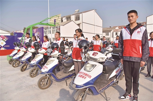 銅山街道樵村社區(qū)新時代文明實踐站的“志愿騎手”隊伍。 徐報融媒記者 陳艷 攝