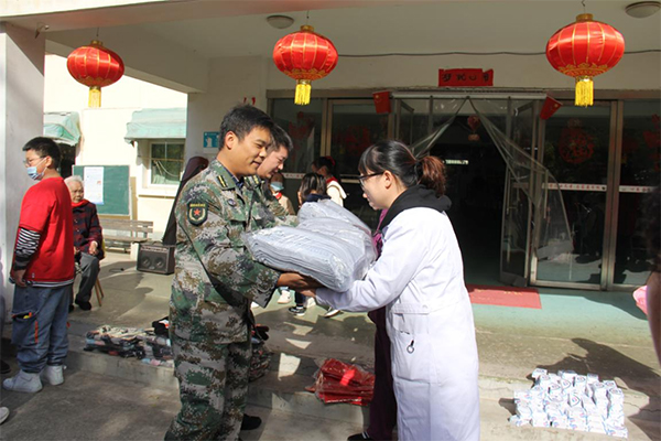 表演結束后,此次慰問活動代表街道武裝部部長白楊向敬老院捐贈了圍巾和毛巾各100條、棉襪200雙、舒膚佳香皂100塊。