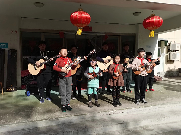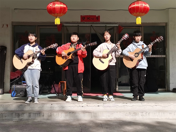 冬日的暖陽照在鴻興敬老院,熱鬧非凡,生機勃勃。伴音藝術培訓機構的孩子們通過古箏表演、吉他彈唱的形式,為老人們送上了精彩的演出,F(xiàn)場氣氛熱烈,精彩的節(jié)目讓老人們樂得合不攏嘴,情不自禁地跟著節(jié)拍唱起來,敬老院變成了歡樂的海洋。