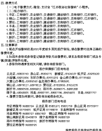 關(guān)于2021年度徐州市城鄉(xiāng)居民醫(yī)療保險 參保繳費的通告