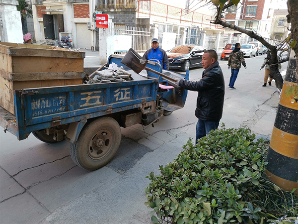 伴隨著冰冷刺骨的寒風(fēng),工作人員和志愿者們深入到村頭巷尾、家家戶(hù)戶(hù),事無(wú)巨細(xì)地開(kāi)始了一天的工作。仔細(xì)聽(tīng),前王村內(nèi)總是有一種“突突”的聲音。“大娘,你家有雜物沒(méi)?沒(méi)用處的話(huà),我就給帶走了!”“哎!還真有,這些紙箱,扔了可惜,留著,我還真用不上,不然你們都給拉走吧。”“等等,我家也有一些……”“來(lái),我?guī)湍?hellip;…”