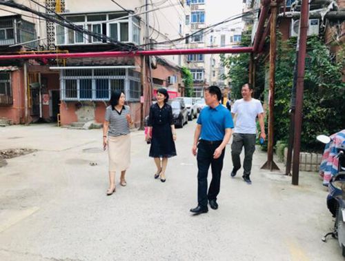 董長惠與永安街道班子成員對老舊小區(qū)現(xiàn)狀進行走訪調(diào)研