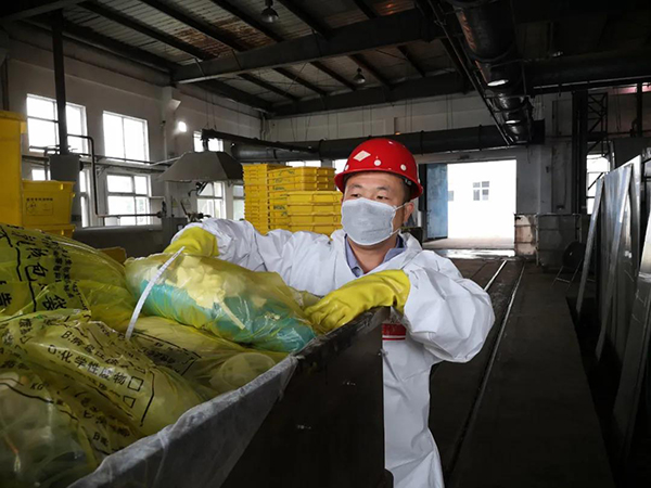 在孝感期間,董壘和隊友們實行兩班倒,每天最少工作12個小時,有時18個小時,甚至24個小時。據(jù)他回憶,2月份醫(yī)療廢物翻了好幾倍,整個庫房爆滿,大量的醫(yī)療廢物堆在廠子里,比一層樓還要高,廠子里堆不下了,就運往臨時處置點。由于新冠肺炎醫(yī)療廢物具有更強的感染性,長時間暴露有二次污染的危險,在高強度的工作下,操作人員極度疲勞,壓力巨大。