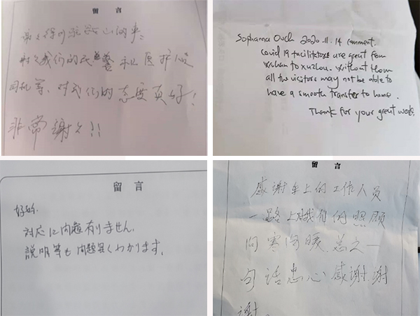 面對(duì)外籍乘客,醫(yī)療隊(duì)成員信心十足。王偉俠靈活運(yùn)用翻譯軟件,向日本乘客宣講防疫知識(shí),提供暈車(chē)藥;黃慧用一口流利的英語(yǔ)告知英國(guó)乘客旅途中的注意事項(xiàng)、指導(dǎo)其做好個(gè)人防護(hù)。醫(yī)療隊(duì)員們較強(qiáng)的工作能力和無(wú)微不至的照護(hù),贏得了外籍乘客對(duì)防疫工作的贊嘆。