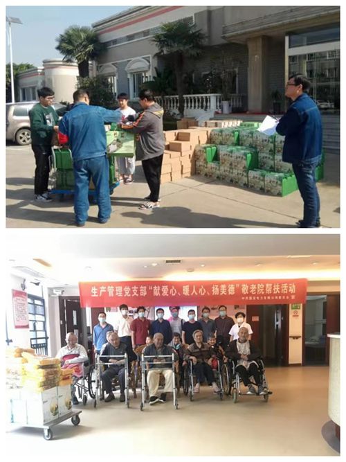 生產(chǎn)管理黨支部開展“獻(xiàn)愛心、暖人心、揚(yáng)美德”敬老院幫扶活動,給老人們送上牛奶、面包、蛋糕等慰問品;使用黨員捐助款1200元。
