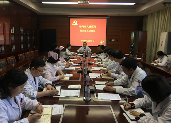 為進(jìn)一步夯實(shí)黨建基礎(chǔ),加強(qiáng)黨建工作,2021年2月19日下午,徐州市兒童醫(yī)院黨委召開黨支部書記會(huì)議,部署2021年基層黨組織工作重點(diǎn)。黨委書記田明、紀(jì)委書記燕敏、各黨支部書記和黨務(wù)工作者共計(jì)18人參加。