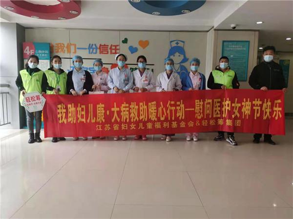 黃淮網(wǎng)  為慶祝“三八”女神節(jié)的到來,2021年3月9日上午,江蘇省婦女兒童基金會與輕松籌、輕松公益走進(jìn)徐州市兒童醫(yī)院的血液腫瘤內(nèi)科、心胸外科等科室,慰問了醫(yī)護(hù)工作者,并向女職工們表達(dá)了節(jié)日的祝賀。