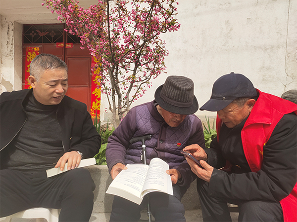 此項(xiàng)活動(dòng)對于行動(dòng)不便、學(xué)習(xí)難,以及因生病無法參會(huì)的部分黨員無疑是一場“及時(shí)雨”,黨總支部書記李計(jì)葉親自帶隊(duì),與支委會(huì)一班人帶著宣講學(xué)習(xí)資料挨戶上門,為黨員們講解近期上級會(huì)議精神,宣講《習(xí)近平談治國理政》第三卷內(nèi)容和現(xiàn)場演示“學(xué)習(xí)強(qiáng)國”APP操作指導(dǎo),確保每位不能到場的黨員都能夠跟上此次冬訓(xùn)的學(xué)習(xí)步伐。
