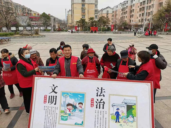 黃淮網(wǎng)(湯屹池)  為了進(jìn)一步提高轄區(qū)居民的法治觀念和文明素養(yǎng),營造積極向上、健康和諧的社會(huì)環(huán)境。3月19日,徐州經(jīng)開區(qū)大黃山街道在三孔橋社區(qū)開展“《徐州市文明促進(jìn)條例》暨法治與美好生活同行”為主題的普法宣傳活動(dòng),為大黃山街道法治文明建設(shè)“舔磚加瓦”。