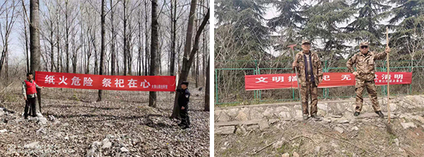 利用宣傳欄、流動宣傳車、電子顯示屏等載體,廣泛開展森林防火宣傳,同時,組織網格員、平安志愿者、民警等深入大街小巷和田間地頭,通過懸掛橫幅標語、發(fā)放文明祭掃倡議書、微信群宣傳等方式,向轄區(qū)群眾宣傳森林火災預防、撲救知識及火災自救常識,引導群眾安全祭祀、文明祭祀,努力營造“森林防滅火,人人皆有責”的濃厚氛圍。