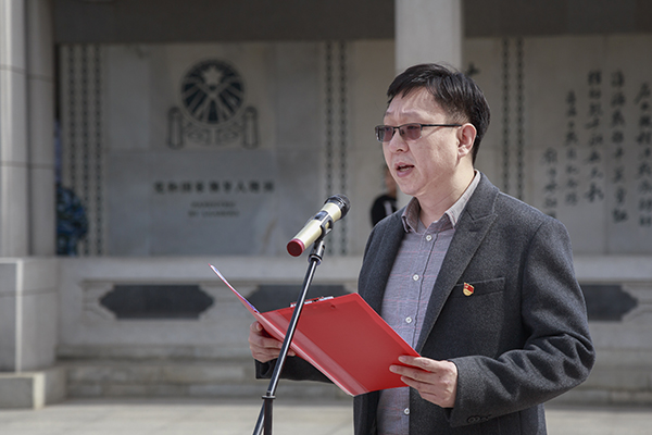 活動(dòng)由黨委委員、副院長(zhǎng)文成主持。黨委書記田明在活動(dòng)中發(fā)表致辭。他滿懷激情地講到,淮海戰(zhàn)役是我國(guó)三大戰(zhàn)役中殲敵數(shù)量最多、政治影響最大的戰(zhàn)役;仡櫥春(zhàn)役,那些在戰(zhàn)役中英勇犧牲的先烈們的事跡可歌可泣。緬懷先烈,重溫歷史,我們感受到黨領(lǐng)導(dǎo)的軍隊(duì)偉大而崇高,今日取得的輝煌成績(jī)來(lái)之不易。我們要珍惜今天美好的生活,愛(ài)黨、愛(ài)國(guó)、愛(ài)社會(huì)主義。此外,淮海戰(zhàn)役的勝利是靠老百姓用小車推出來(lái)的,是依靠強(qiáng)大的人民群眾在后方支持。我們不能忘記英勇奮斗的革命先烈,也不能忘記英雄的人民。作為黨員干部,我們要把“全心全意為人民服務(wù)”這一黨的宗旨牢記在心,不能忘記廣大人民群眾的利益。要把“一切為了兒童健康”的醫(yī)院宗旨落實(shí)到“為群眾辦實(shí)事”的一樁樁提升服務(wù)舉措中。作為服務(wù)淮海經(jīng)濟(jì)區(qū)的兒童醫(yī)療的三級(jí)甲等兒童醫(yī)院,全院廣大職工要齊心協(xié)力、精誠(chéng)團(tuán)結(jié)、奮力拼搏,在提升醫(yī)療技術(shù)和水平上進(jìn)取不止,爭(zhēng)取早日實(shí)現(xiàn)兒童醫(yī)院高質(zhì)量發(fā)展,更好地服務(wù)兒童。