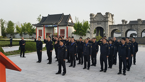 在沛縣黨史紀念館莊嚴肅穆的展廳面前,大家著裝整齊,目光堅定,懷著敬仰之情,認真聆聽沛縣黨組織從成立到解放之前的建設(shè)史、成長史,追思革命先烈,傳承紅色基因,汲取前進力量。在局黨組書記、局長張冠軍的帶領(lǐng)下,黨員代表們面對黨旗,重溫了入黨誓詞。