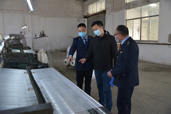 圖為宿豫區(qū)稅務(wù)干部深入企業(yè)開展幫辦服務(wù)。 周毓弢攝