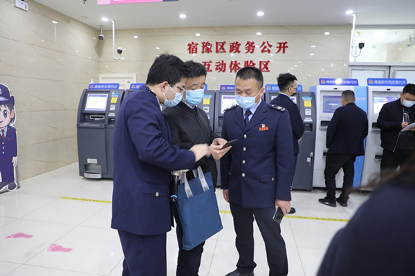 圖為宿豫區(qū)稅務(wù)干部向群眾講解“云辦稅”。杜樂攝
