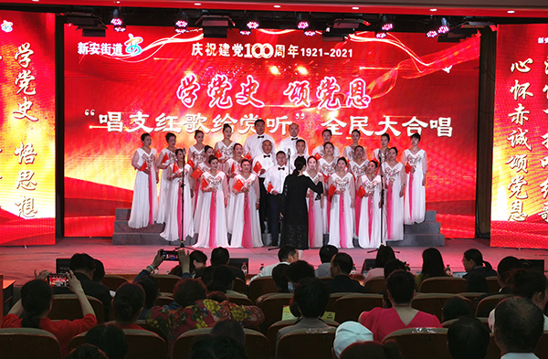 新沂市新安街道舉辦“學(xué)黨史、頌黨恩——唱支紅歌給黨聽”全民大合唱比賽