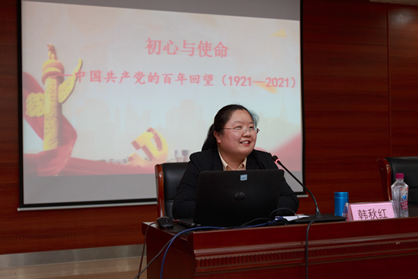 本次報(bào)告會(huì)特別邀請(qǐng)徐州市黨史宣講團(tuán)成員、徐州市教育教學(xué)研究室韓秋紅教研員。她以《初心與使命--中國(guó)共產(chǎn)黨的百年回望(1921-2021)》為題,分別從“用理解的態(tài)度學(xué)習(xí)黨史”“從四個(gè)歷史關(guān)鍵詞理解黨的特質(zhì)”“歲月不曾遠(yuǎn)去:我們身邊的黨史”和“中國(guó)特色社會(huì)主義進(jìn)入新時(shí)代”四個(gè)方面深刻闡述了歷史是最好的教科書(shū),中國(guó)革命歷史是最好的營(yíng)養(yǎng)劑。學(xué)習(xí)黨史、國(guó)史,是堅(jiān)持和發(fā)展中國(guó)特色社會(huì)主義、把黨和國(guó)家各項(xiàng)事業(yè)繼續(xù)推向前進(jìn)的必修課。