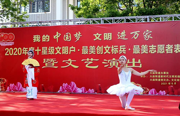 黃淮網(wǎng)  6月4日下午,徐州經(jīng)開區(qū)大廟街道2020年度“十星級文明示范戶”“十星級文明戶”“星級文明戶”暨第四屆“最美創(chuàng)文標(biāo)兵”“創(chuàng)文優(yōu)秀志愿者”表彰大會在市民廣場舉行。
