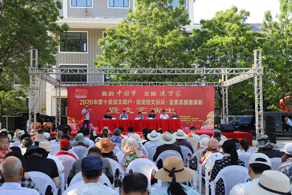 陳冰及班子成員為2639名“星級文明戶”和“十星級文明戶”代表授牌,并為110名“十星級文明示范戶”、“最美創(chuàng)文標(biāo)兵”和“創(chuàng)文優(yōu)秀志愿者”頒發(fā)證書和獎品。