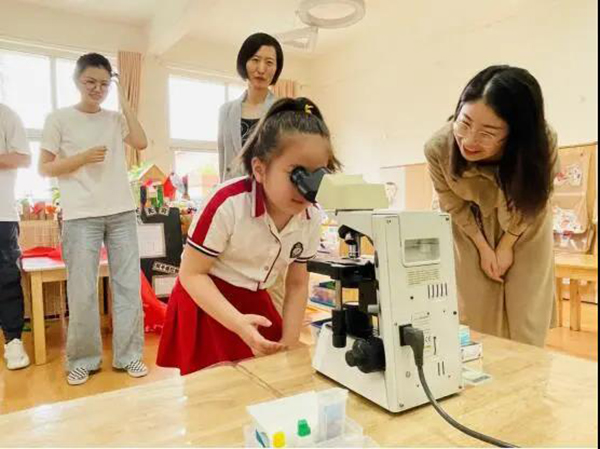 隨后,現(xiàn)場(chǎng)為小朋友們演示血涂片的制作過(guò)程及如何在顯微鏡下觀(guān)察細(xì)胞。孩子們對(duì)顯微鏡下的細(xì)胞充滿(mǎn)了好奇,爭(zhēng)先到顯微鏡前“一看究竟”,不斷提出各種問(wèn)題,第一黨小組成員耐心的為孩子們科普相關(guān)知識(shí),滿(mǎn)足了小朋友的好奇心,激發(fā)了幼兒學(xué)習(xí)醫(yī)學(xué)科普的興趣。