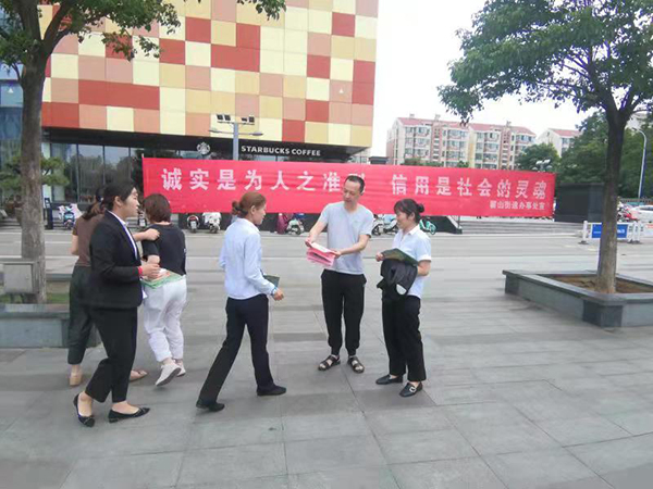 黃淮網(wǎng) 為進(jìn)一步推進(jìn)翟山街道社會信用體系建設(shè),提高社會誠信意識和信用水平,提高社會公眾信用意識,營造誠實守信的良好社會風(fēng)尚,6月18日下午,徐州市泉山區(qū)翟山街道經(jīng)濟(jì)辦在頤和匯鄰灣組織開展以“誠實是為人之準(zhǔn)則,信用是社會的靈魂”為主題的信用宣傳活動。