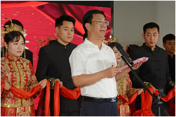 婚禮活動分為兩個階段。第一個階段是在位于漢興街道新時代文明實踐所的漢興宴會中心,為新人們舉辦了簡約而隆重、喜慶且莊嚴的集體婚禮活動儀式。沛縣縣委書記吳昊同志為喜結(jié)良緣的10對新人證婚,并且為每對新人現(xiàn)場贈送新婚禮物——《習近平談治國理政》系列圖書。吳書記稱贊10對新人以實際行動踐行婚俗新風,為自己的人生留下了生動精彩的一頁,也為全縣廣大青年做出了榜樣和表率。吳書記勉勵新人們互敬互愛,努力做尊老愛幼的模范、夫妻和睦的模范,為建設(shè)美好新沛縣貢獻自己的青春和力量。