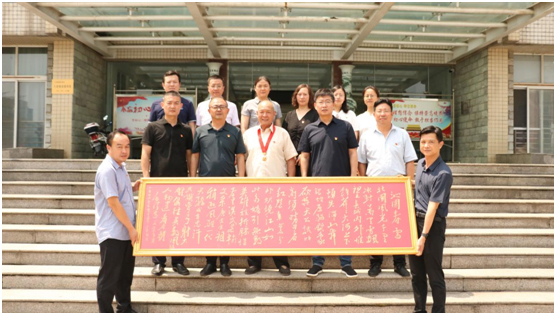 黃淮網(wǎng)  2021年7月1日,在黨的百年華誕來臨之際,徐州市云龍區(qū)大龍湖街道程莊社區(qū)老黨員于少庭在觀看完慶祝中國共產(chǎn)黨成立100周年大會的直播后,感慨萬分,頂著烈日來到大龍湖街道,為街道送來自己手寫后篆刻有毛主席《沁園春·雪》的木刻匾。匾長300CM寬50CM,以紅色為底,草書撰寫,手工雕刻而成。